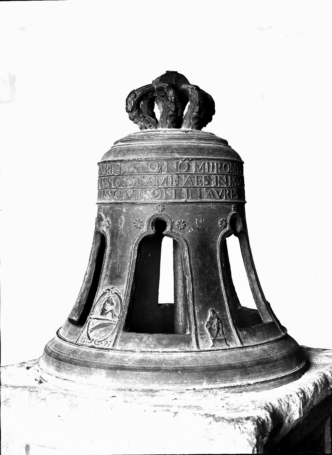 - NOTIZIE STORICO CRITICHE La lastra, pubblicata nel 1936 a corredo dell'intervento di Cottafavi sugli "Atti e memorie dell'unione professionisti ed artisti della provincia di Mantova", fotografa una campana in bronzo con sei finestrelle datata 1593 e realizzata per l'oratorio di San Lorenzino a Mantova (Clinio Cottafavi, La chiesa di San Lorenzino, "Mantus", a. IV (1936), n. 3 (maggio-giugno), pp. 2-4; la tavola che la illustra non è numerata). La scontornatura con nastro in carta gommata nera nella parte superiore dello scatto e la schermatura con vernice rossa intorno al soggetto fotografato risultano chiaramente finalizzate a tale scopo editoriale. La medesima lastra (o un positivo da essa stampato) è stata anche utilizzata nel 1950 per il catalogo del Museo di Palazzo Ducale curato da Ozzola (Leandro Ozzola, Il Museo d'Arte medievale e moderna del Palazzo Ducale di Mantova, Mantova, L'Industriale, 1950, n. 245 p. 62, fig. 274), quando la campana era collocata nella Sala delle Imprese dell'appartamento della Guastalla. Chiuso al culto nel 1810 il piccolo oratorio (da decenni chiesa evangelica), la campana, che reca lo stemma di Tullio Petrozzani, fu collocata nella chiesetta di Santa Maria del Terremoto di Piazza Canossa, dove Giuseppe Gerola (funzionario della Regia Sovrintendenza all'arte medievale e moderna per le province di Trento, Verona, Mantova) la registrò nel 1917, decretando che fosse inviata a Firenze per proteggerla dai pericoli bellici (Giuseppe Gerola, Le campane delle chiese di Mantova, Mantova, Mondovi, 1921, n. 40, p. 12). Tornata a Mantova, dopo un periodo di deposito nella Fabbriceria di Sant'Andrea, fu trasferita a Palazzo Ducale nei cui depositi si trova ancor oggi. Giannantoni nel 1929 ricorda la campana nella Sala di Mezzo del piano nobile del Castello di San Giorgio (Nino Giannantoni, Il Palazzo Ducale di Mantova, Roma, La Libreria dello Stato, 1929, pp. 124-126) e una foto dello Studio Calzolari (catalogata in Sirbec (http://www.lombardiabeniculturali.it/fotografie/schede/IMM-2s010-0001101/?view=ricerca&offset=23) qui la immortala, evidenziando meglio la base marmorea sulla quale poggia. Ad un'attenta osservazione dello scatto Calzolari, la base si rivela essere la medesima che compare nel nostro scatto, suggerendoci che la nostra lastra sia stata eseguita dopo l'allestimento museale creato nella fortezza gonzaghesca (Clinio Cottafavi, R. Palazzo Ducale. Mantova [Appartamento giuliesco di Castello], "Bollettino d'arte del Ministero della pubblica istruzione", serie II, vol. V, n. 10 (aprile), 1926, pp. 468-474)