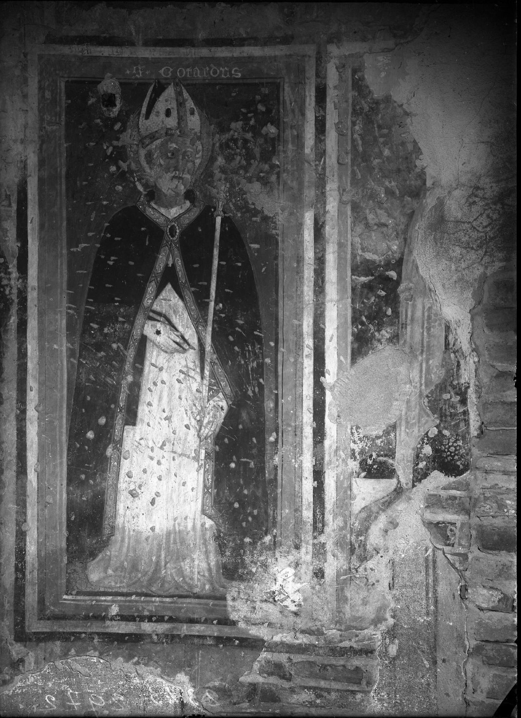 - NOTIZIE STORICO CRITICHE Una lettera datata 23 agosto 1939, indirizzata al Regio Soprintendente ai Monumenti di Verona, proveniente dal Ministero dell'Educazione Nazionale e firmata dal Ministro Enrico Bottai, conferma l'avvenuta ricezione di fotografie che documentano le condizioni degli affreschi rinvenuti nell'abside della chiesa di Nuvolato in Quistello. Affreschi riportati alla luce, durante un restauro strutturale, per l'interessamento del professor Giuseppe Gorni, noto scultore nativo del luogo. Gli scatti erano stati effettuati per evidenziare il cattivo stato conservativo dei dipinti e per richiedere una sovvenzione statale per il restauro. Nella lettera si fa riferimento alla mancanza di fondi e all'impossibilità di concedere il contributo richiesto. Bisognerà attendere il 1941, come testimonia l'inventario manoscritto delle lastre negative. Alla pagina "Nuvolato" viene infatti riportata una nutrita documentazione degli affreschi prima e dopo il restauro, con la data 1941
