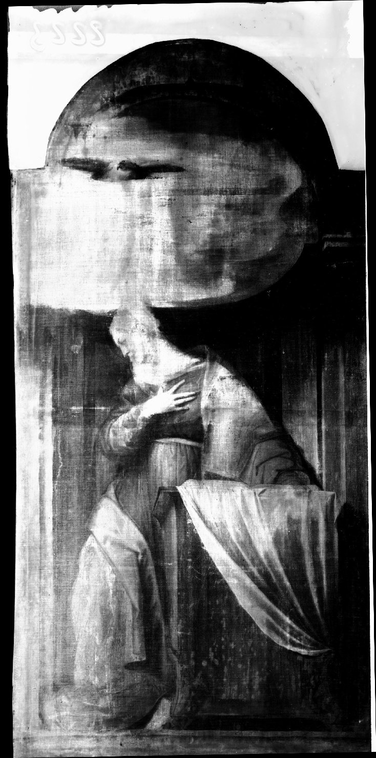 - NOTIZIE STORICO CRITICHE Le tempere su tela conservate presso la cattedrale di Asola, ebbero vicissitudini legate alla loro collocazione (in esterno, sotto portico, poi in depositi e magazzini) e subirono un rovinoso intervento di lavatura nel 1848 che cancellò le sfumature del tessuto cromatico rendendolo pressoché monocromo. Furono esposte alla mostra "Pitture in Brescia dal Duecento all'Ottocento" del 1946, dopo che nel settembre 1939 "l'esposizione fu bruscamente interrotta a causa dello scoppio delle ostilità in Europa" (catalogo mostra p. 11). Gli scatti in esame potrebbero collocarsi in prossimità di questi eventi espositivi: la ripresa a luce radente mostra l'impoverimento della superficie pittorica, ma in mancanza di elementi più precisi, l'analisi della lastra negativa porta a circoscrivere l'arco cronologico di produzione al secondo quarto del secolo XX