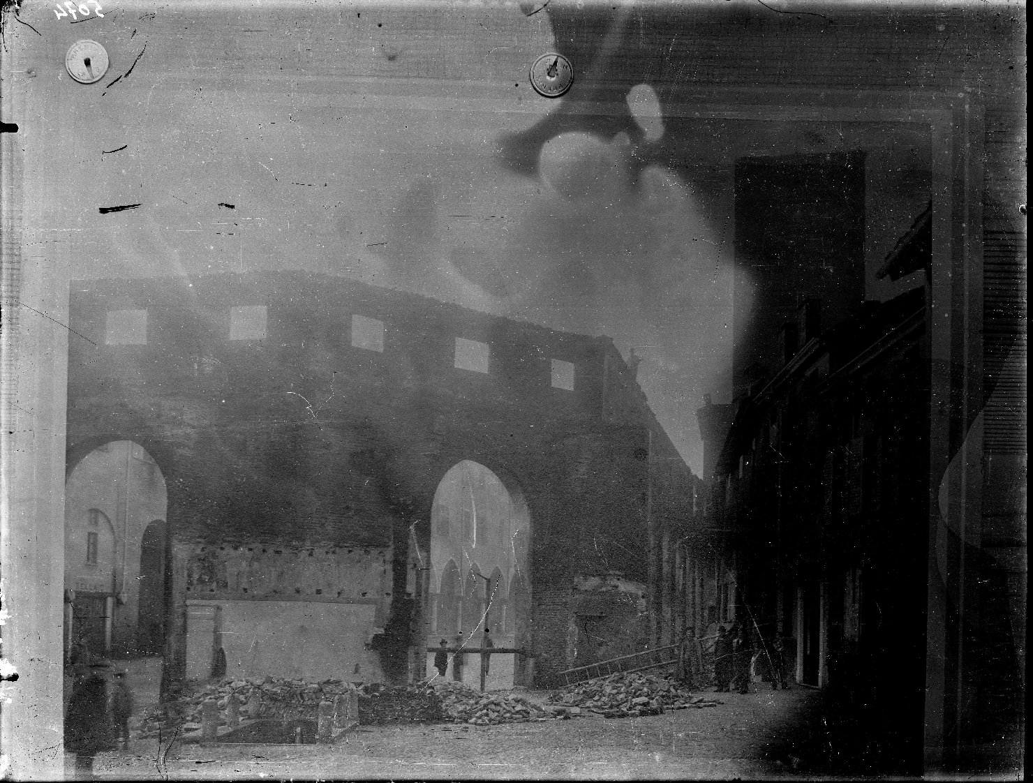 - NOTIZIE STORICO CRITICHE A partire dal 1903, in seguito alla volontà di modificare la viabilità urbanistica ed ampliare gli ingressi in città, a Mantova si intraprende un "programma sistematico di demolizione delle porte e delle mura" (Grimoldi 2003). Due anni prima era stata demolita l'esedra di ingresso a Palazzo Ducale in Piazza Sordello. L'immagine in esame raffigura proprio la struttura ripresa esternamente, durante il suo abbattimento. L'immagine è reperibile sul sito Lombardia Beni Culturali, altro esemplare con analogo punto di ripresa mostra la presenza della bottega di un calzolaio in corrispondenza delle macerie tra le due arcate. Lo scatto originale è dunque ascrivibile al 1901, mentre la ripresa su lastra si colloca nei primi decenni del Novecento, in conformità con le caratteristiche generali dell'archivio