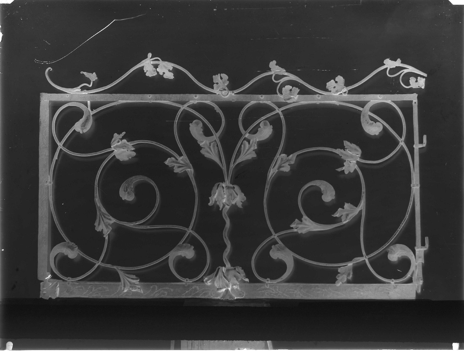 - NOTIZIE STORICO CRITICHE Potrebbe trattarsi di una documentazione fotografica collegata all'operazione di catalogo condotta già a partire dagli anni '30, con un'attenzione specifica verso gli arredi e gli oggetti di pregio contenuti negli edifici ecclesiastici. La ripresa su fondale neutro e l'uso della scontornatura della lastra concorrono a porre il risalto la lavorazione artigianale dell'oggetto. In mancanza di elementi più precisi, l'analisi del negativo porta a circoscrivere l'arco cronologico di produzione al secondo quarto del secolo XX