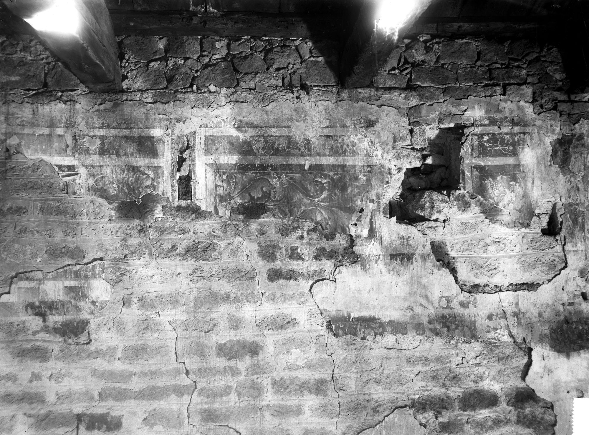 Castello di Monselice. Traccia d'affreschi decorativi esistenti nella cucina ove trovasi il camino con lo stemma dei Marcello