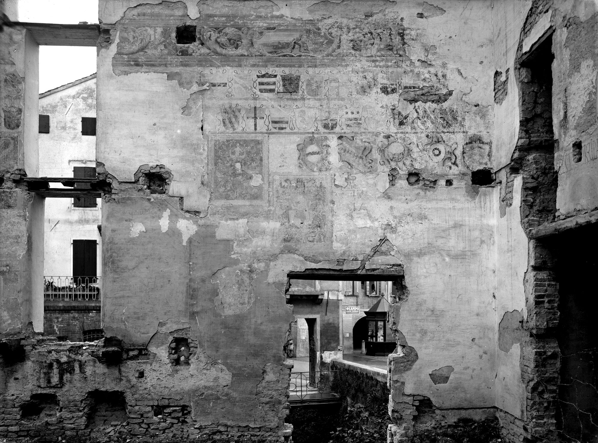 Oderzo. Ex sede del palazzo Pretorio. Quanto rimane degli affreschi decorativi e degli stemmi pure a fresco