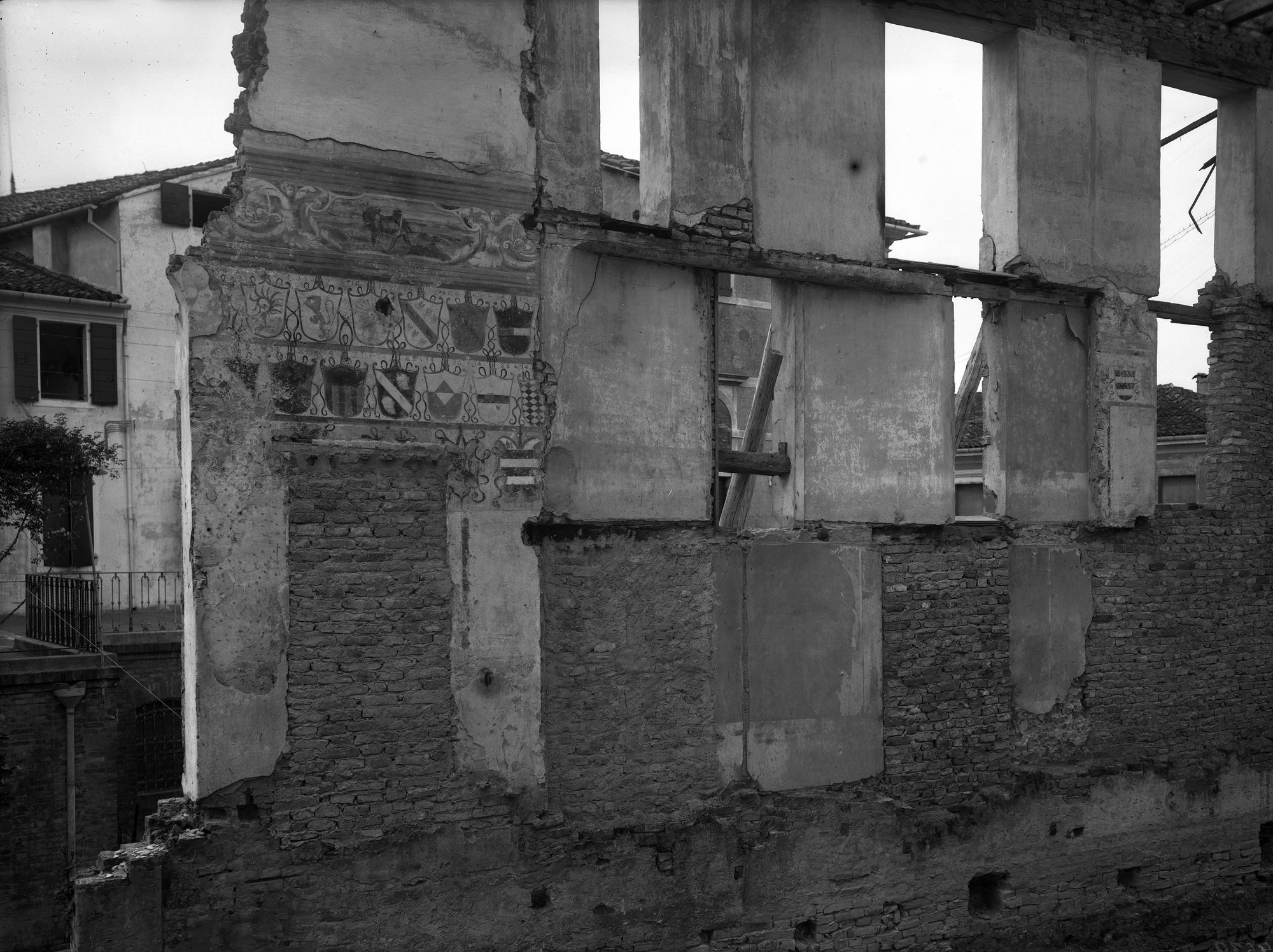 Oderzo. Ex sede del palazzo Pretorio. Quanto rimane degli affreschi decorativi e degli stemmi pure a fresco