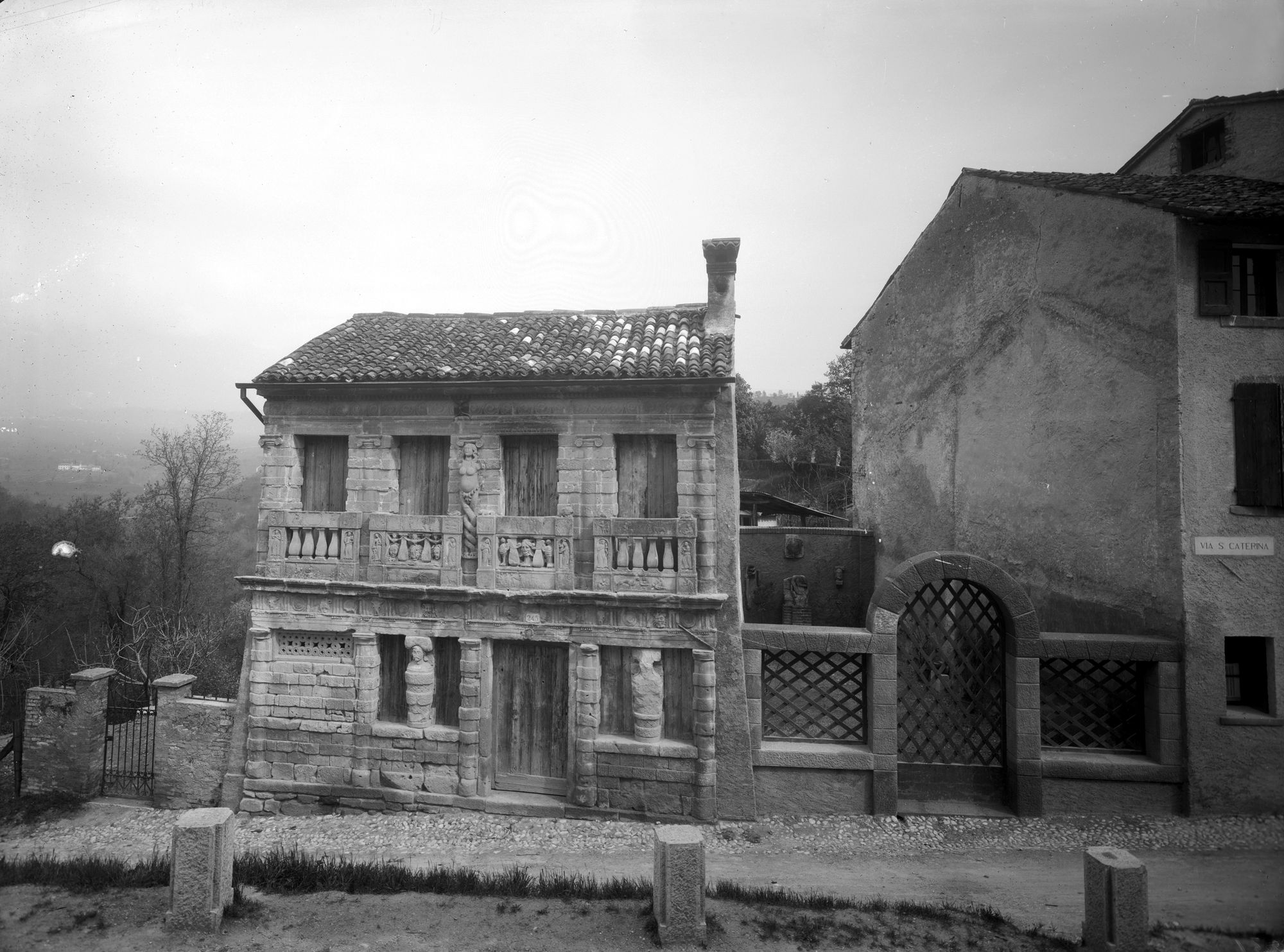 Asolo. Casa detta Longobarda proprietà De Mattia. Veduta d'insieme e particolari della facciata dopo il restauro