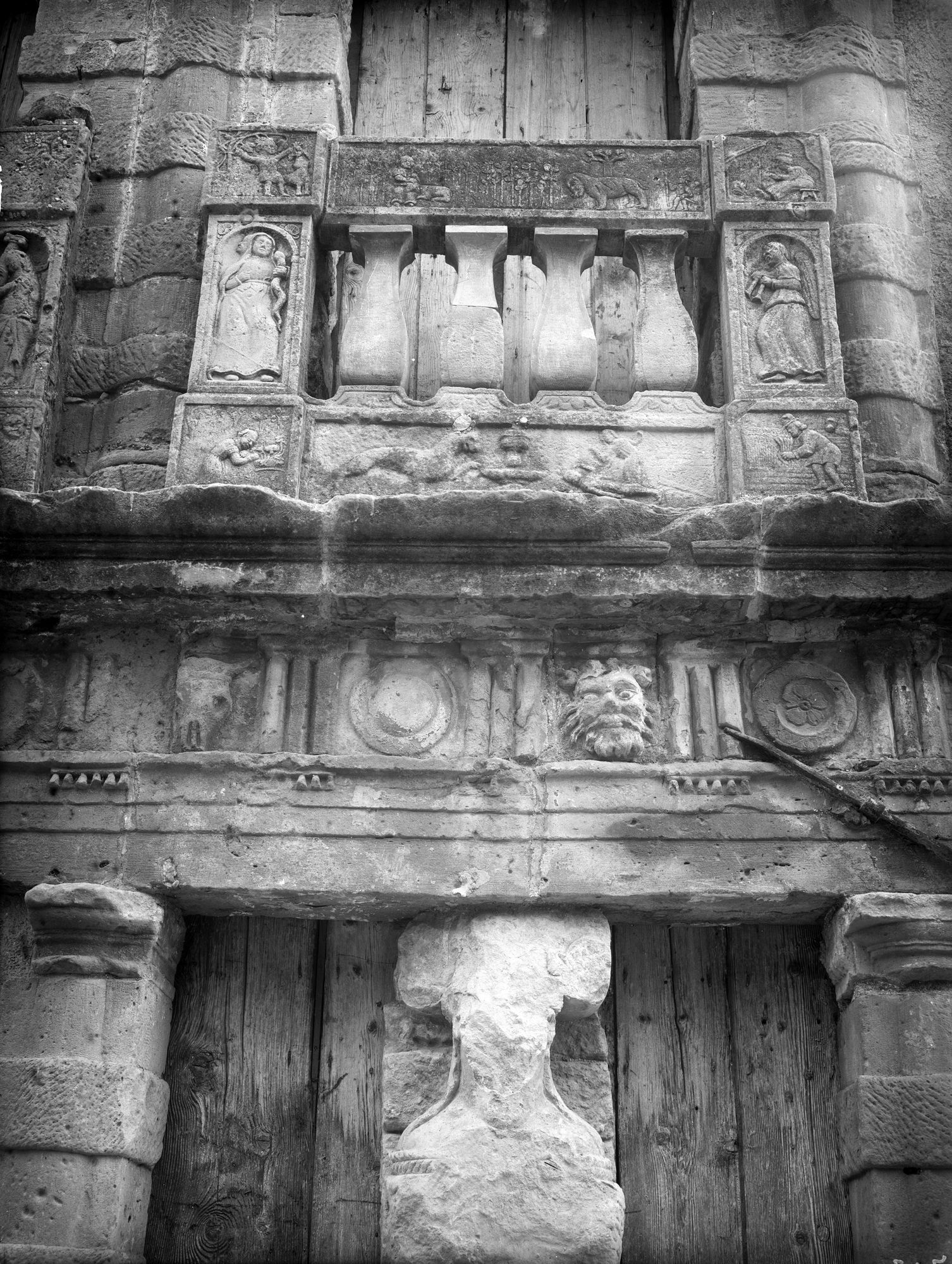 Asolo. Casa detta Longobarda proprietà De Mattia. Veduta d'insieme e particolari della facciata dopo il restauro