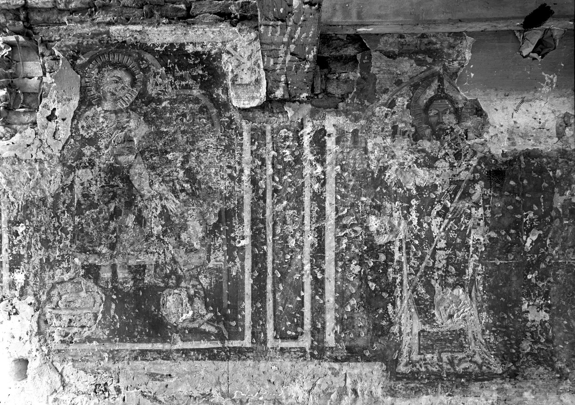 Casa in vicolo Santa Chiara. I Santi Nicolò, Liberale, Pietro e Caterina. Affreschi sec. XIV