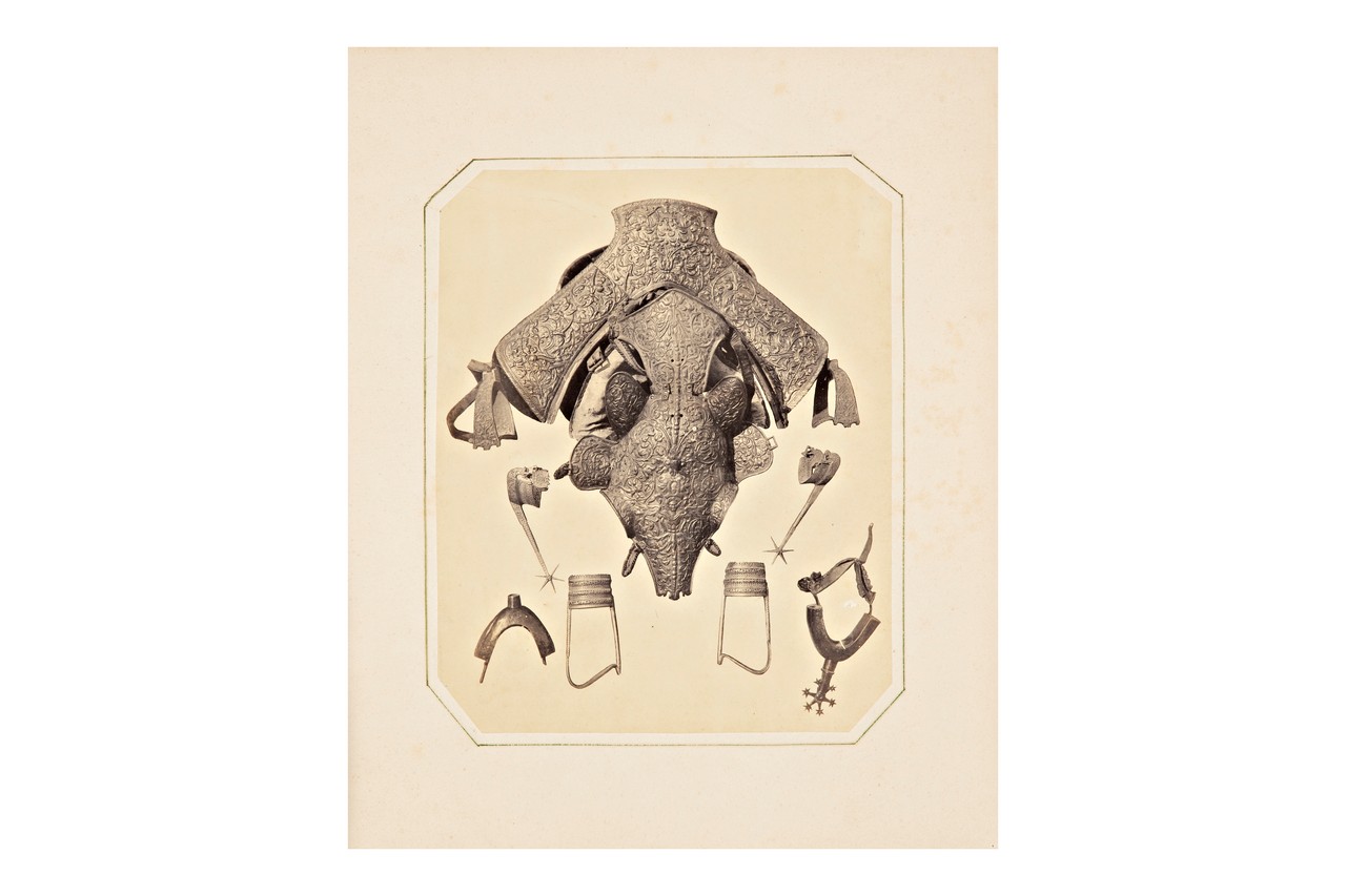 L. Sattel mit getriebener Arbeit, Sporen und Steigbügel