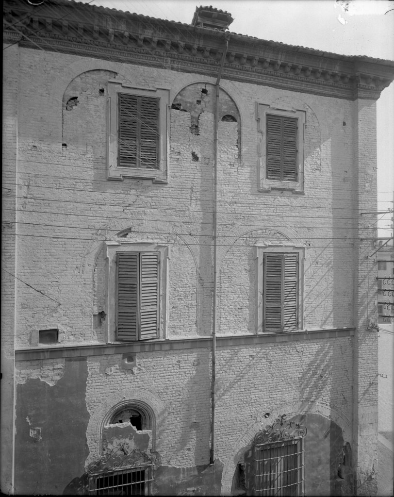 - NOTIZIE STORICO CRITICHE L’aspetto attuale del Palazzo vescovile di Parma risale ai restauri compiuti tra gli anni Venti e Trenta del Novecento. Dal 1922 al 1930, durante il mandato del vescovo Guido Maria Conforti, la facciata fu riportata all'aspetto originario con il ripristino delle grandi trifore, delle colonne del piano terra e delle logge del cortile murate nel secolo XVII. La ripresa del 1922 mostra la situazione precedente l'intervento di restauro, iniziato in quello stesso anno. Il fotografo Felice Croci (1888/1934), fu attivo a Bologna tra il 1911 ed il 1934, anno della sua scomparsa