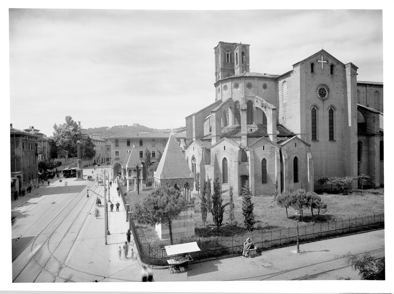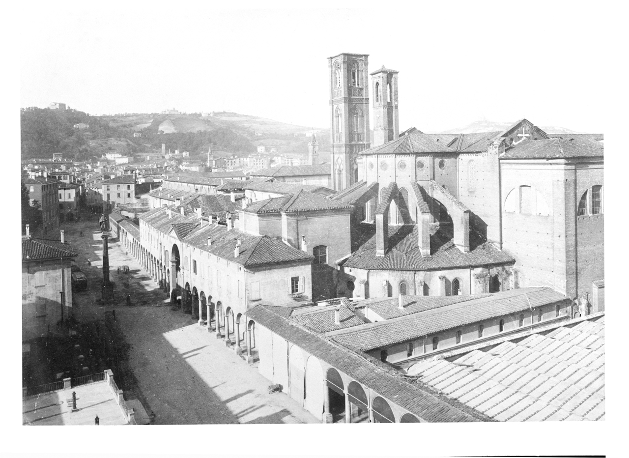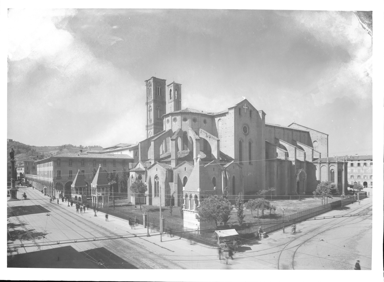 - NOTIZIE STORICO CRITICHE Le 5 lastre del servizio fotografico sono riproduzioni della ditta Villani di altrettante stampe positive; il soggetto delle vedute è il complesso di San Francesco ripreso nel prospetto posteriore absidale verso Piazza Malpighi. Non sempre gli autori dei positivi sono stati rintracciati: è il caso delle anonime N_002774 e N_002776, mentre N_002769 (dal confronto con l'immagine pubblicata in ''Il tempo dell'immagine. Fotografi e società a Bologna 1880-1980" a cura di Andrea Emiliani e Italo Zannier, 1993, p. 64, fig. 16) e N_002773 (dalla scheda on-line http://collezioni.genusbononiae.it/products/dettaglio/14575#) si devono a Pietro Poppi, fondatore dello studio Fotografia dell'Emilia, e N_002775 di Giuseppe Vettori (stampa proveniente dall'album "Tempio monumentale di S. Francesco Bologna", edito a Bologna nel 1926 circa, di cui si conserva una copia presso la Biblioteca dell'Archiginnasio di Bologna, Gabinetto Disegni e Stampe, Foto Bo, n° 545). Le immagini ripercorrono l'evoluzione della piazza partendo da N_002773, che documenta lo stato del complesso di edifici sorti attorno a San Francesco prima delle demolizioni di Alfonso Rubbiani, già parzialmente attuate in N_002769, dove si individuano le arche dei glossatori già liberate dalle superfetazioni. N_002774 e N_002776 mostrano invece la piazza nel primo dopoguerra