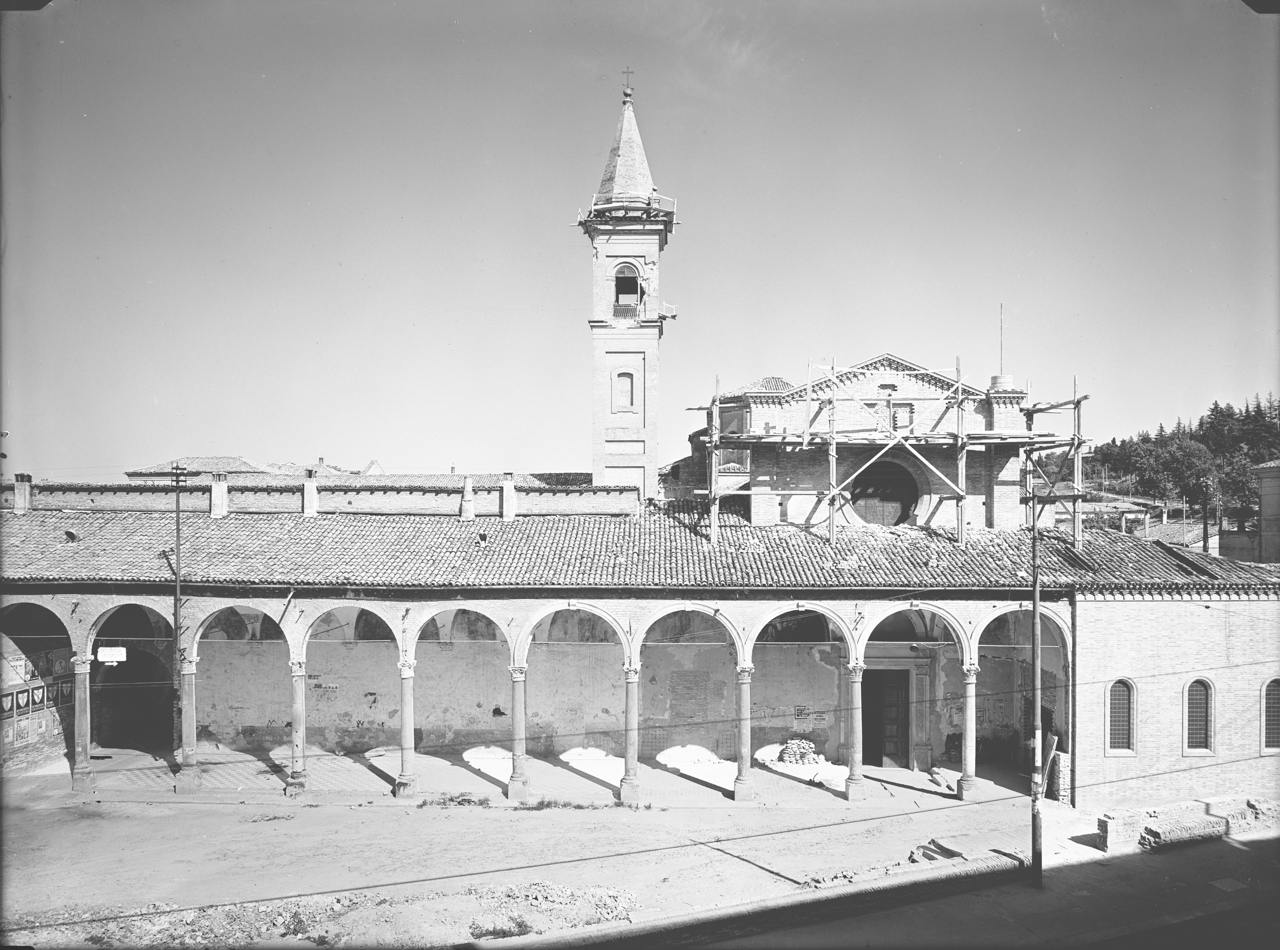 - ISCRIZIONI sul pergamino: recto - SOPRINTENDENZA AI MONUMENTI DELL'EMILIA/ BOLOGNA/ MOBILE G SCAF. I N. 14511 [cancellato e sostituito da 15011]/ INVENT. N. 31 [cancellato]/ PROV. Bologna COMUNE Bologna/ LOCALITÀ Bologna/ MONUMENTO CHIESA DELLA SS. ANNUNZIATA/ Facciata durante i lavori di restauro/ FOTOGRAFO Villani DATA 1951/ OSSERVAZIONI -