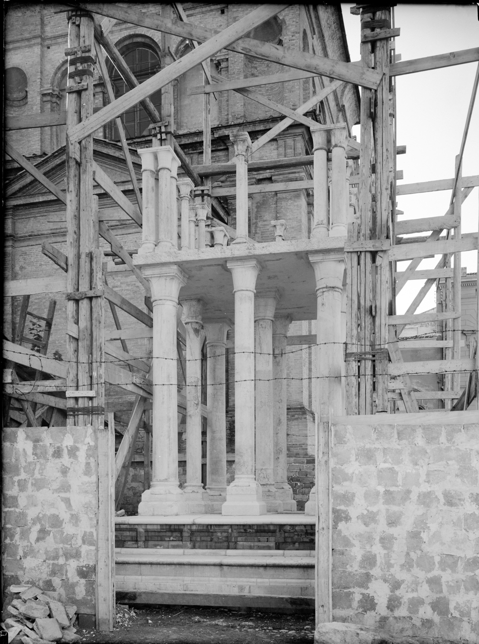 Bologna Tomba di Rolandino durante i lavori Ricostruzione della parte architettonica del piano superiore della tomba di Rolandino de' Passeggeri - Bologna - Piazza San Domenico