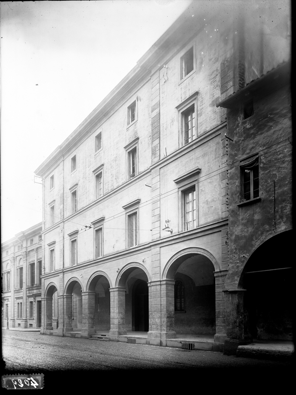- NOTIZIE STORICO CRITICHE La lastra in esame, realizzata dal fotografo Croci nel 1923, mostra una veduta del Palazzo di Via Zamboni al civico n. 59, come apprendiamo dal pergamino. A sinistra, si intravede il palazzo universitario sede dell’Istituto e Museo di geologia Giovanni Capellini. Nell’Archivio Storico della Soprintendenza A.B.A.P. di Bologna è conservato un faldone (BO M 2192, 1993-) che riguarda il Palazzo sito in via Zamboni 59 e denominato “Palazzo Monari Antolini Ossi”. All’interno vi è la relazione storico-artistica allegata alla notifica della dichiarazione di interesse culturale ai sensi dell’art. 15c. 1 del Decreto Legislativo 42/2004, cui si rimanda per un approfondimento sulla storia di questo palazzo (FNTI: BAPF173)