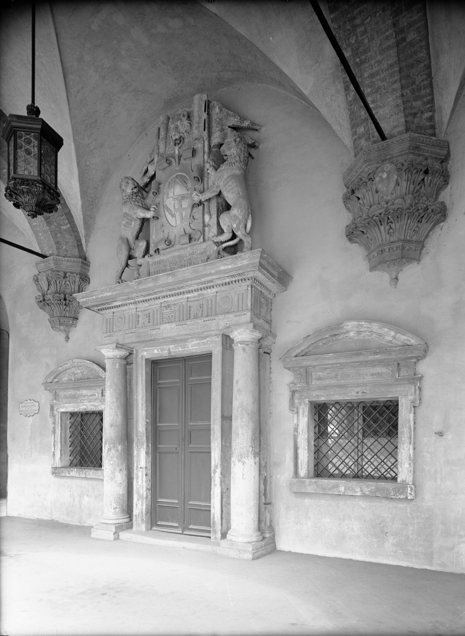Bologna - P. Maggiore/ Palazzo d'Accursio/ portale nel 1° cortile Riprese della finestra su Piazza Nettuno e dei portali nel Cortile d'Onore del Palazzo Comunale (Palazzo d'Accursio) a Bologna, nel 1955 (3 lastre)