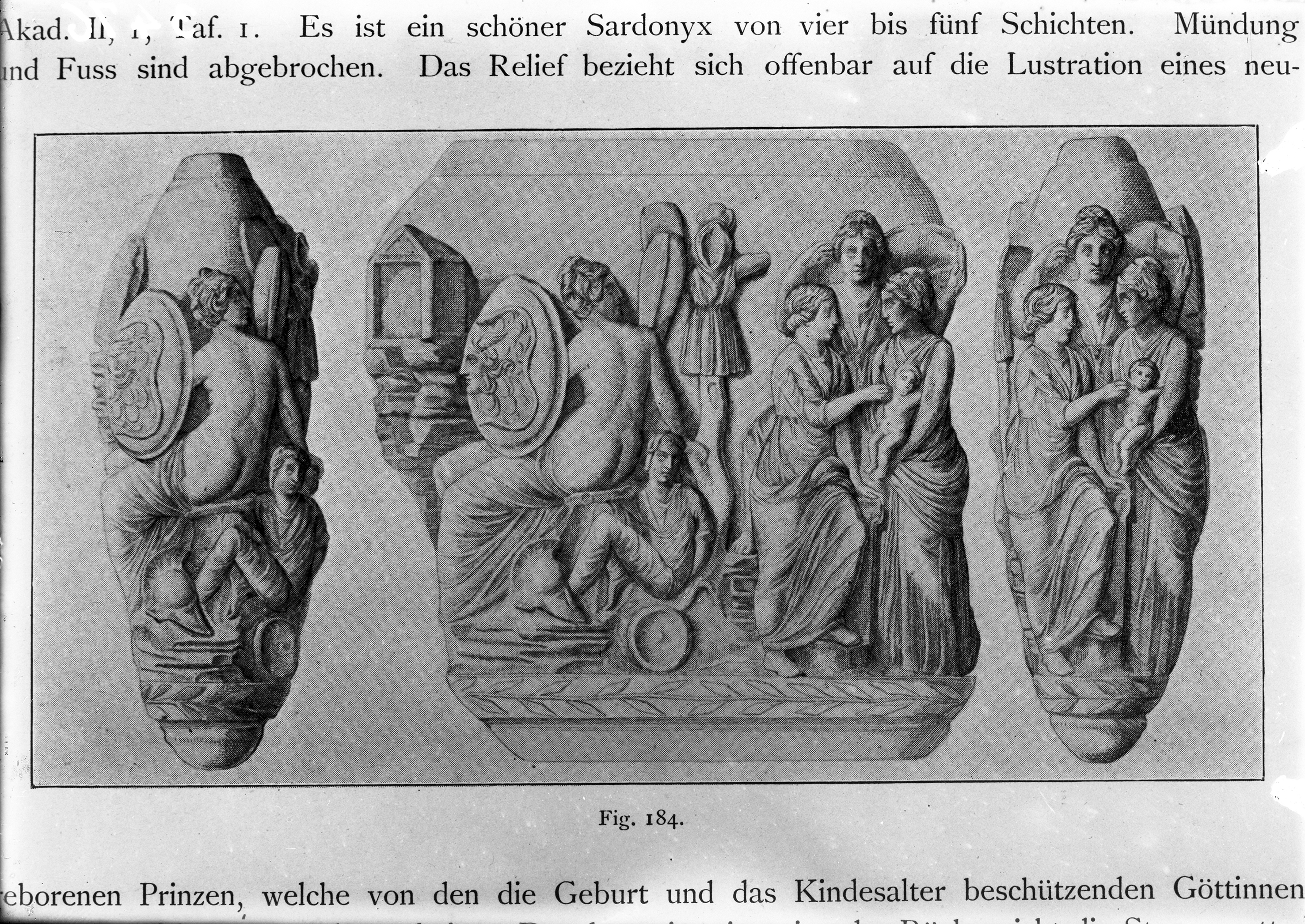 Ricostruzione grafica di rilievo su pietra con scena di 'lustratio' (da libro a stampa)