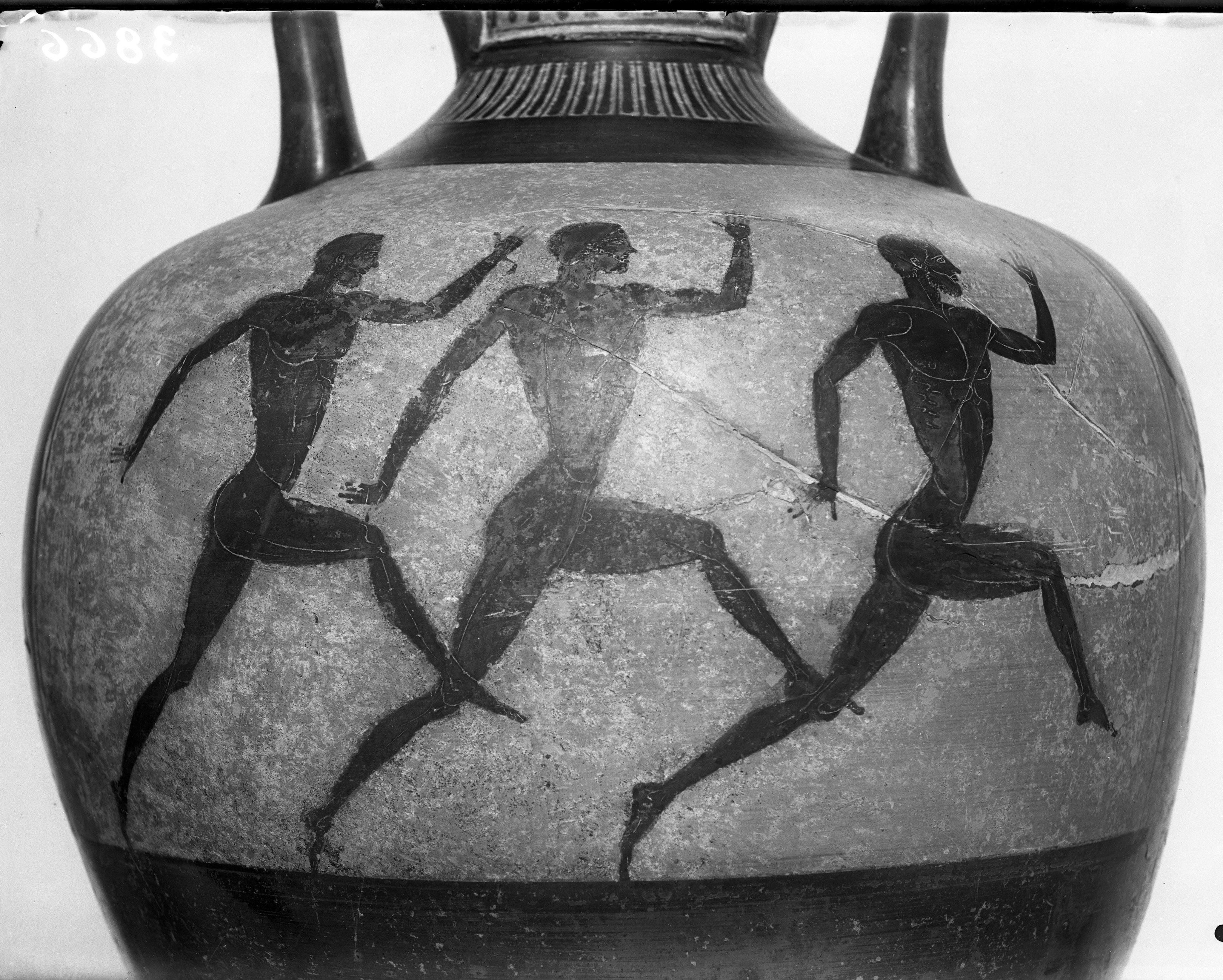 Anfora panatenaica a figure nere, particolare. (G. Pellegrini, Catalogo dei vasi greci dipinti delle necropoli felsinee, 1912, 12)