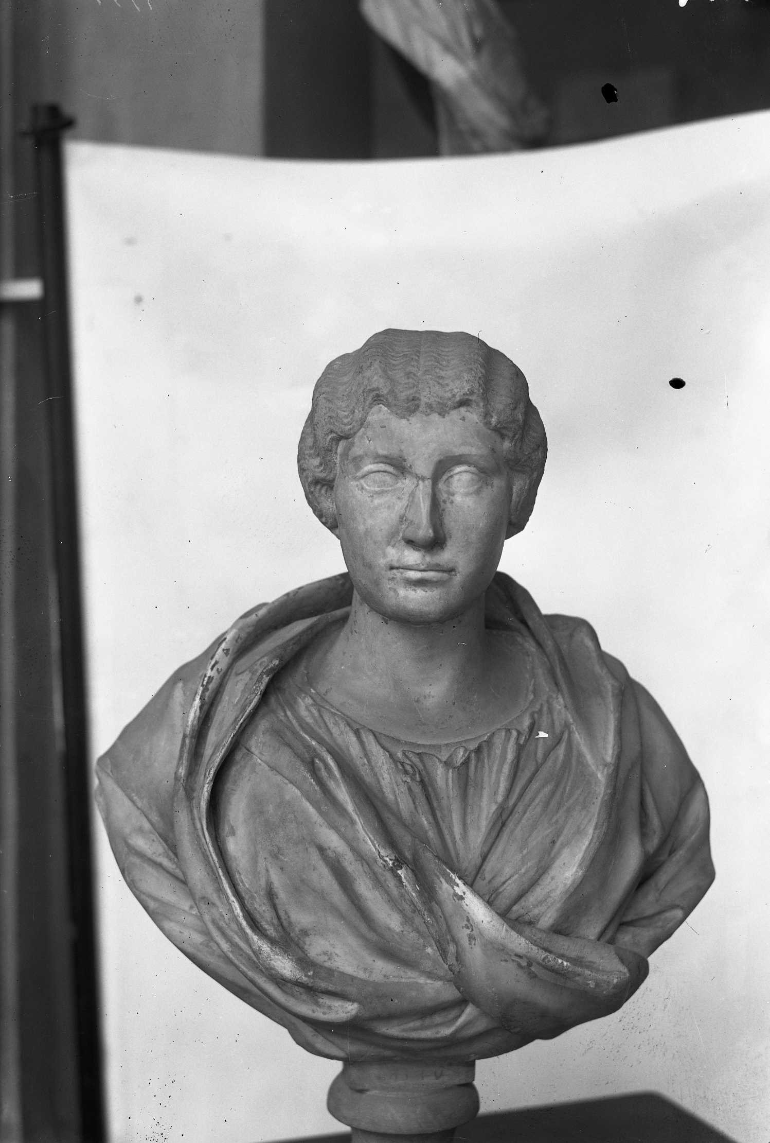 Busto in marmo (?) di soggetto femminile con accurata pettinatura 'a melone'; età antonina; visione frontale