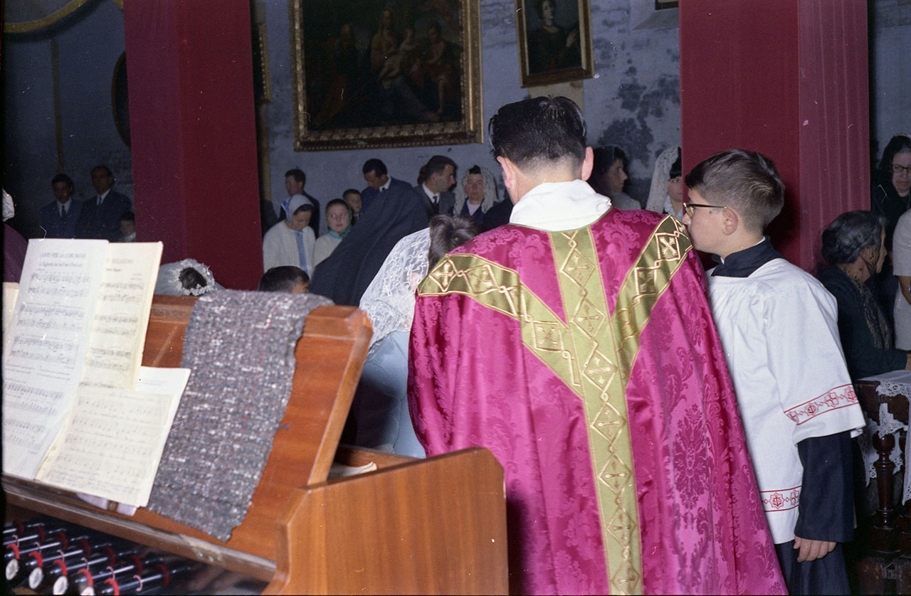- NOTIZIE STORICO CRITICHE Il fondo è composto da negativi e positivi, realizzati tra il 1965 e il 1974 dal fotografo Bruno Pondrelli. Bruno Pondrelli nacque il 15 marzo 1921 ad Argelato, da Ida Falchieri e Antonio Pondrelli esercente del bar sport di Bentivoglio. Dal 30 agosto 1939 all'8 settembre 1943 prestò servizio militare in marina poi, avendo collaborato con il battaglione Cirillo della 4ª brigata Venturoli Garibaldi per la liberazione di Bentivoglio dai nazifascisti, venne riconosciuto benemerito dal 15 aprile 1944 alla Liberazione. Dal 1943 risiedette a Bentivoglio e, avvalendosi della licenza di avviamento professionale, svolse attività impiegatizia presso l’azienda CIMA di San Giorgio di Piano (Bo). Contestualmente si occupò di fotografia a livello amatoriale, realizzando servizi per cerimonie e dimostrando una particolare propensione per la ritrattistica. Questo gruppo di negativi documenta alcuni eventi religiosi, una comunione e un battesimo, che si sono svolti all’interno della prima chiesetta di Bentivoglio, a cavallo tra la fine degli anni Sessanta e i primi anni Settanta del Novecento. All’epoca la parrocchia di Bentivoglio utilizzava come sede religiosa uno dei locali dei magazzini Pizzardi. La vecchia chiesa, intitolata a Santa Maria Ausiliatrice, rimase in uso alla comunità fino al 1970, anno in cui venne terminata la costruzione del nuovo edificio di culto
