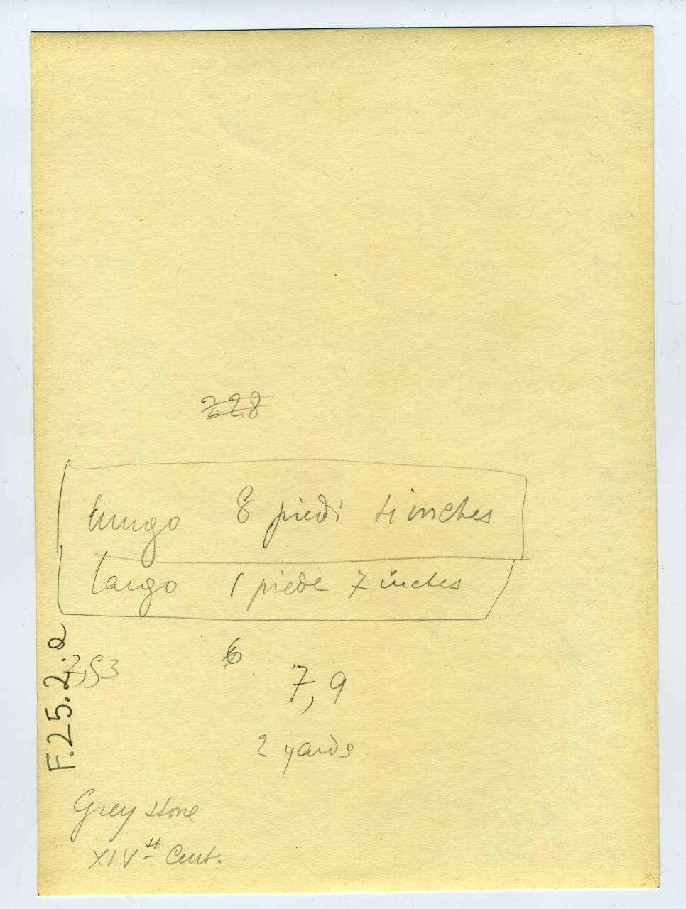 - ISCRIZIONI sul supporto primario: verso di F.25.2.a - cfr. documentazione allegata - a matita - inglese