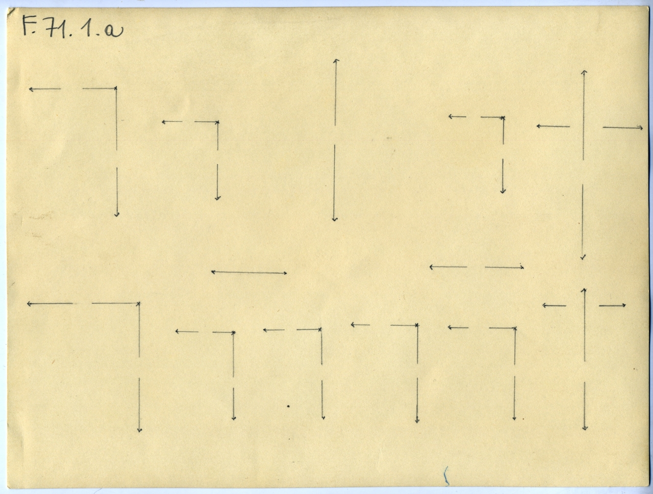- ISCRIZIONI sul supporto primario: verso di F.71.1.a - schema grafico dei manufatti - a matita -