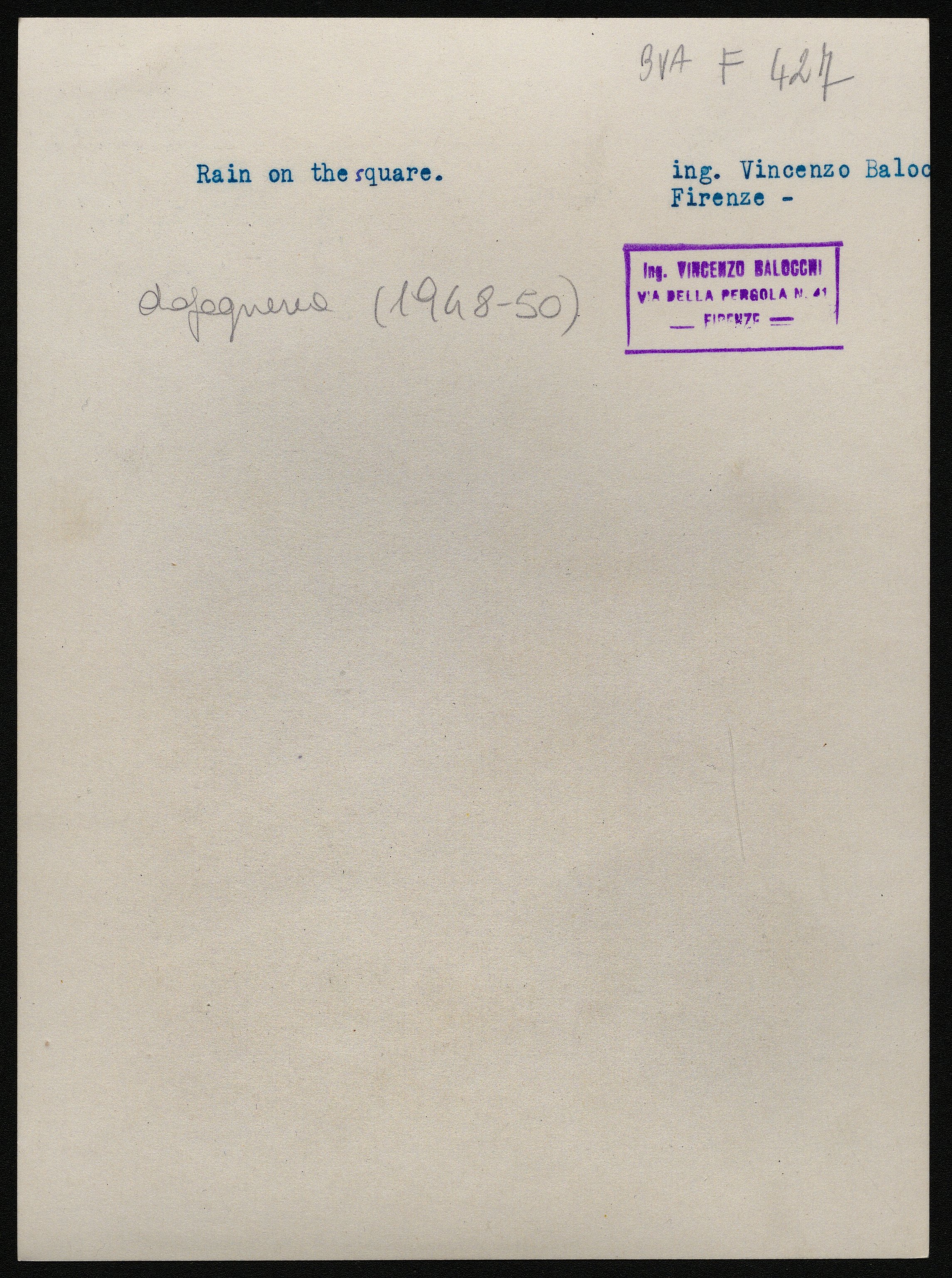 Balocchi, Vincenzo (1892-1975): fotografo principale