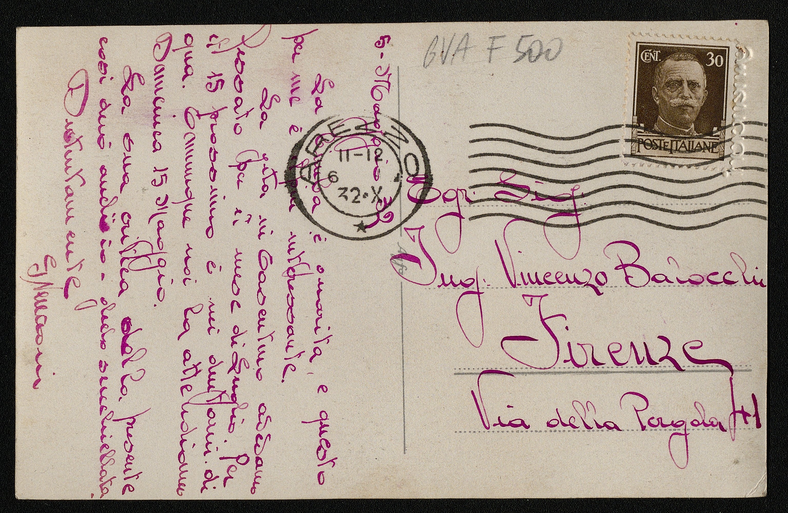 Natura morta. Cartolina inviata dall'autore a Vincenzo Balocchi