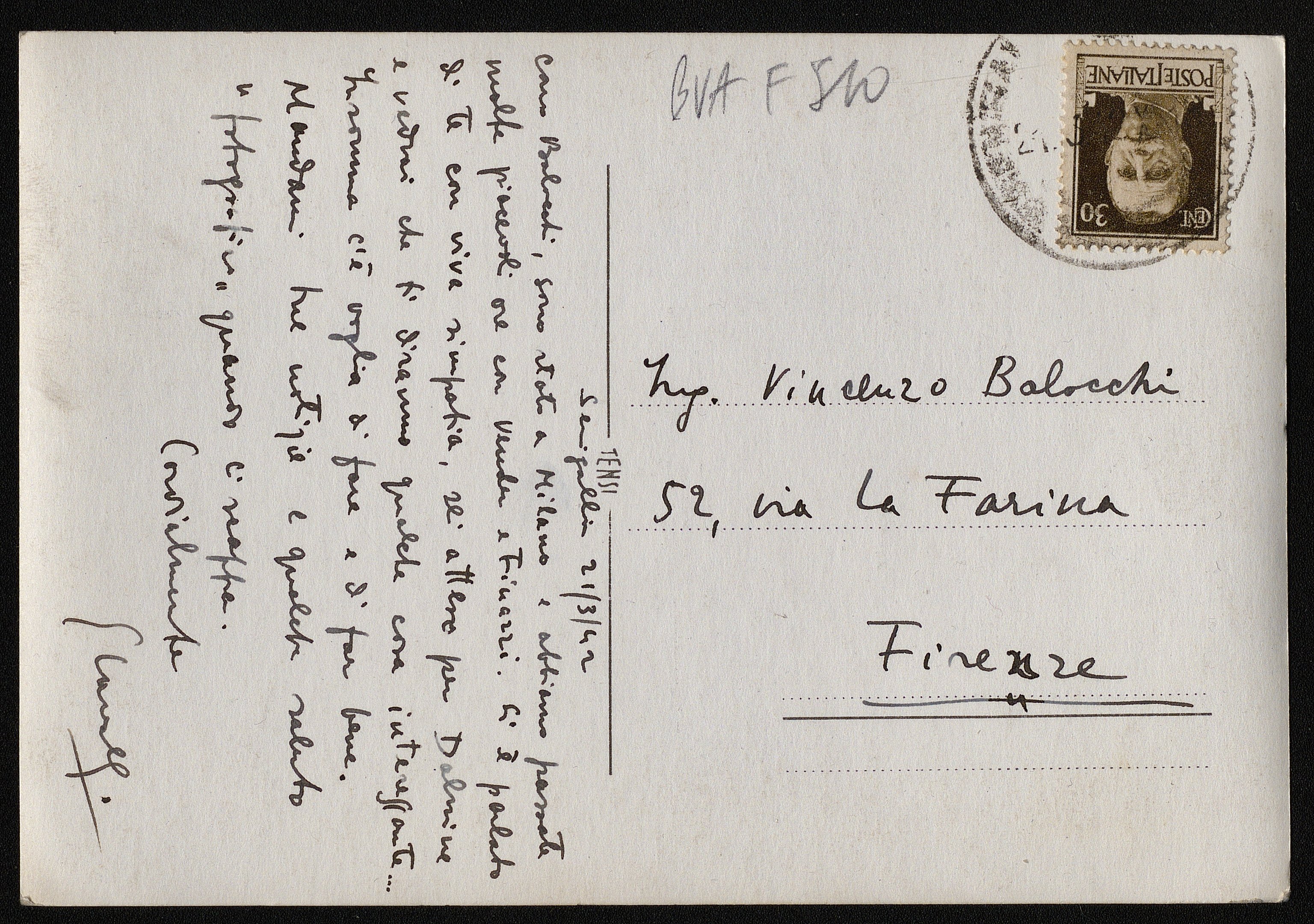 Persone per strada. Cartolina inviata dall'autore a Vincenzo Balocchi