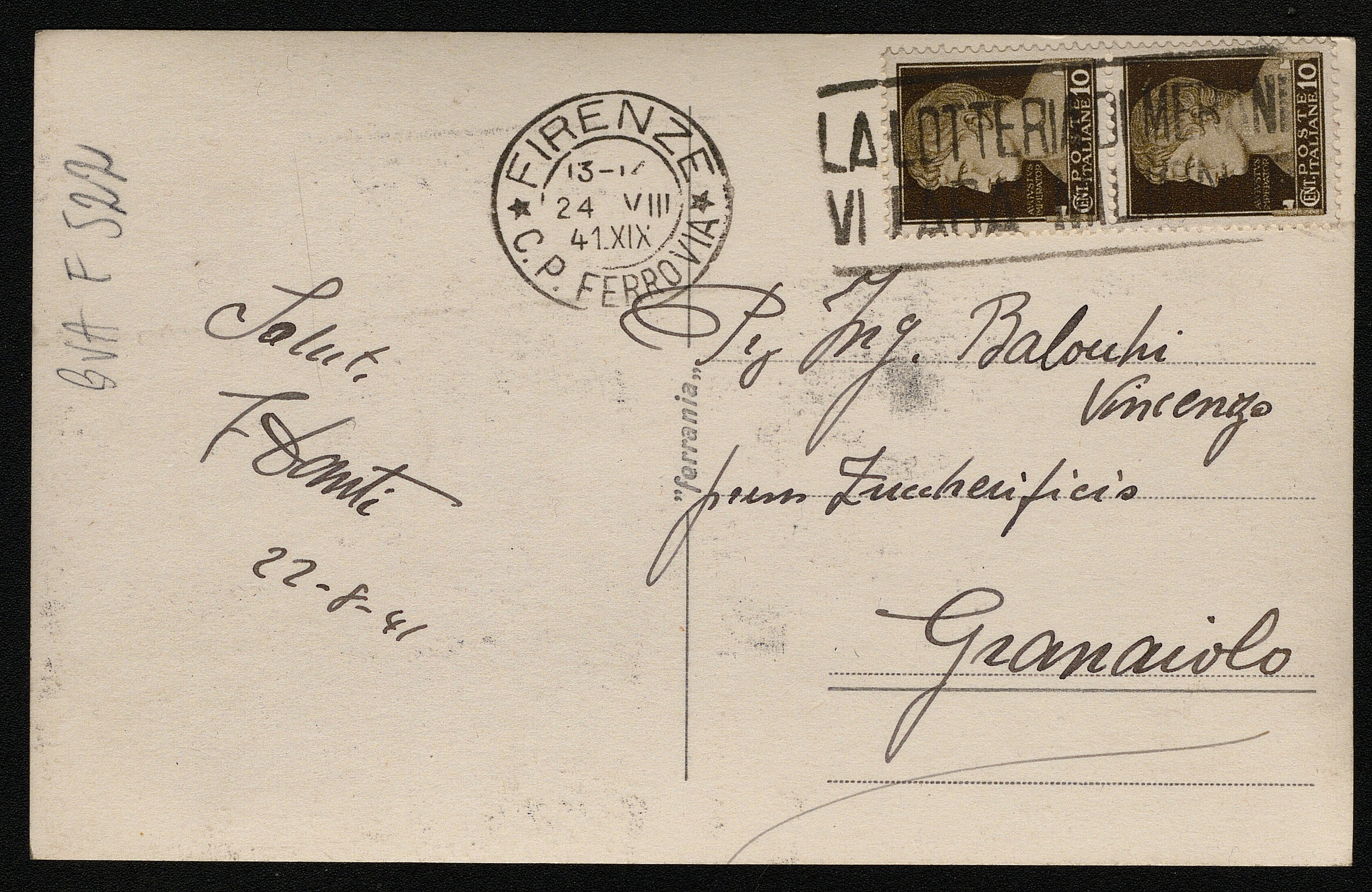 Due buoi. Cartolina inviata dall'autore a Vincenzo Balocchi