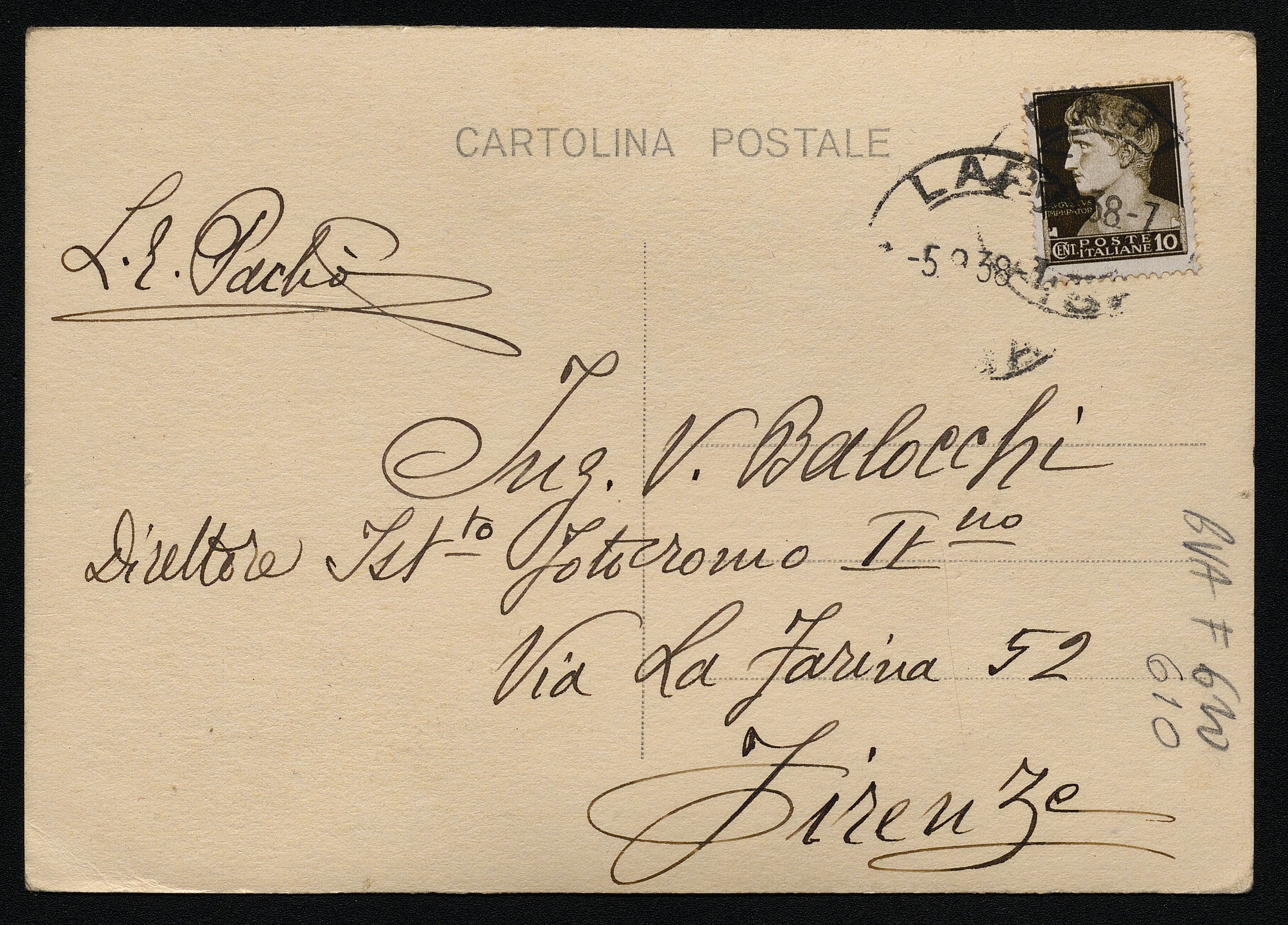 Venditore. Cartolina inviata dall'autore a Vincenzo Balocchi