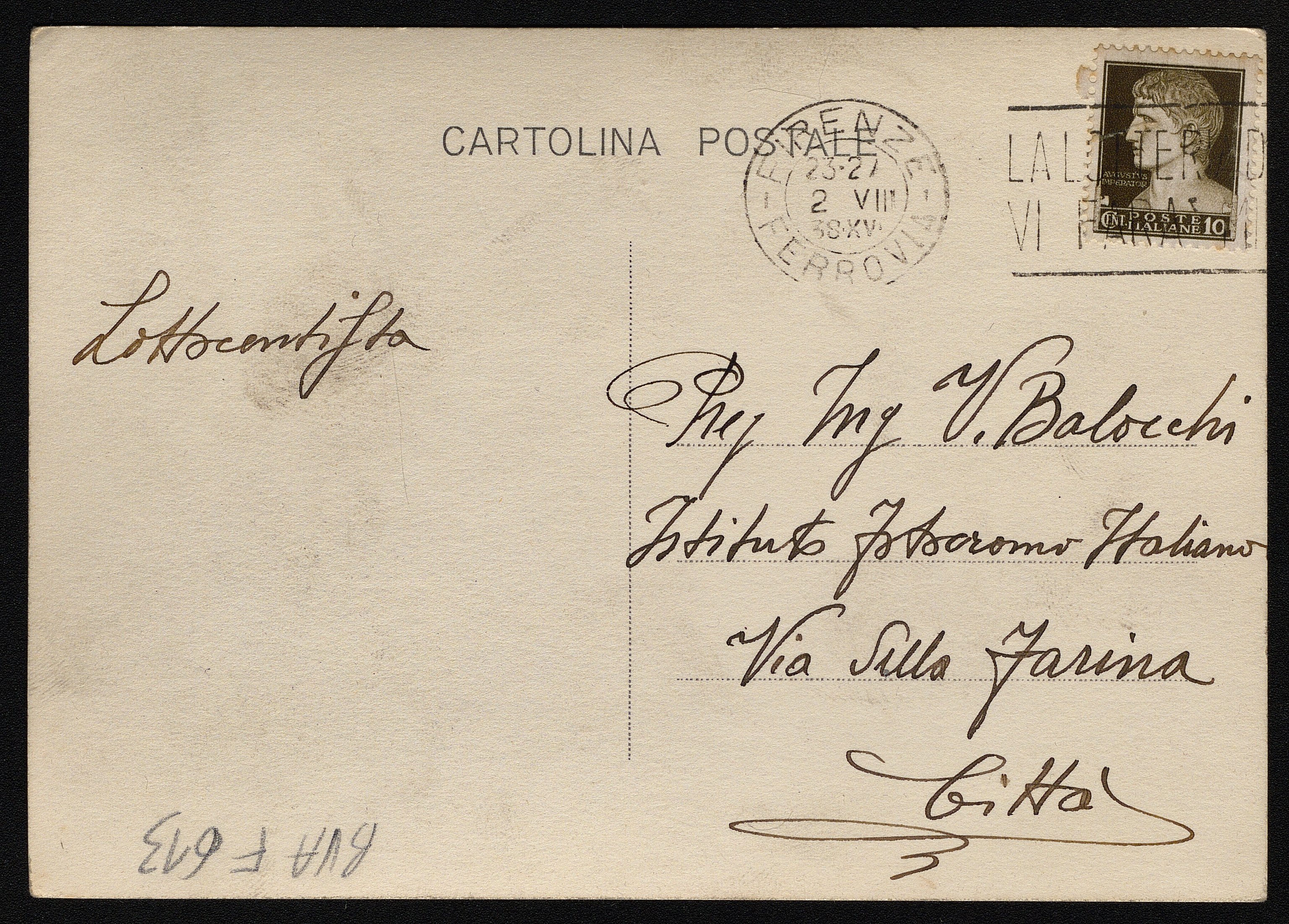 Uccelli in gabbia e ombre. Cartolina inviata dall'autore a Vincenzo Balocchi