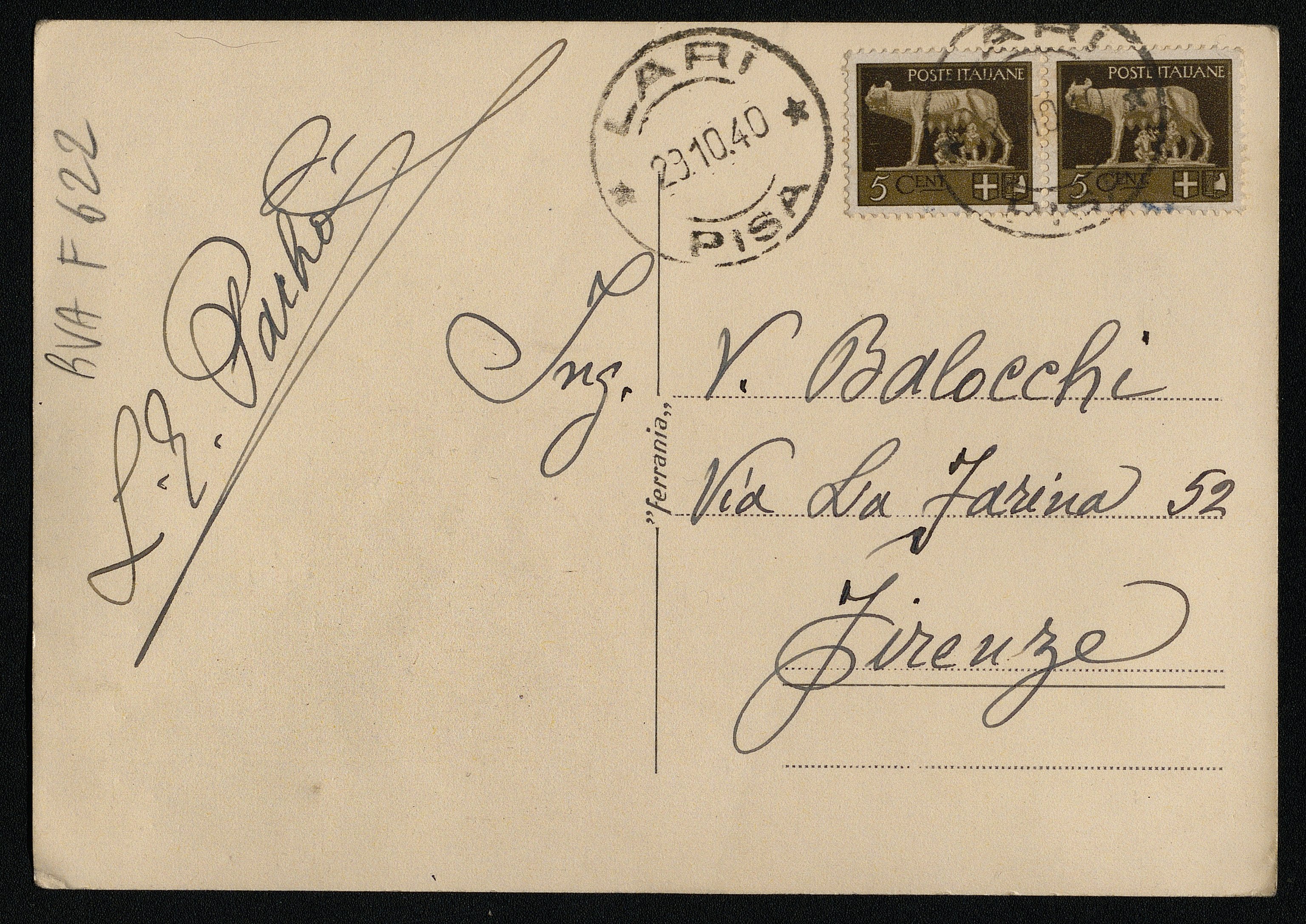Uomo con strumento. Cartolina inviata dall'autore a Vincenzo Balocchi