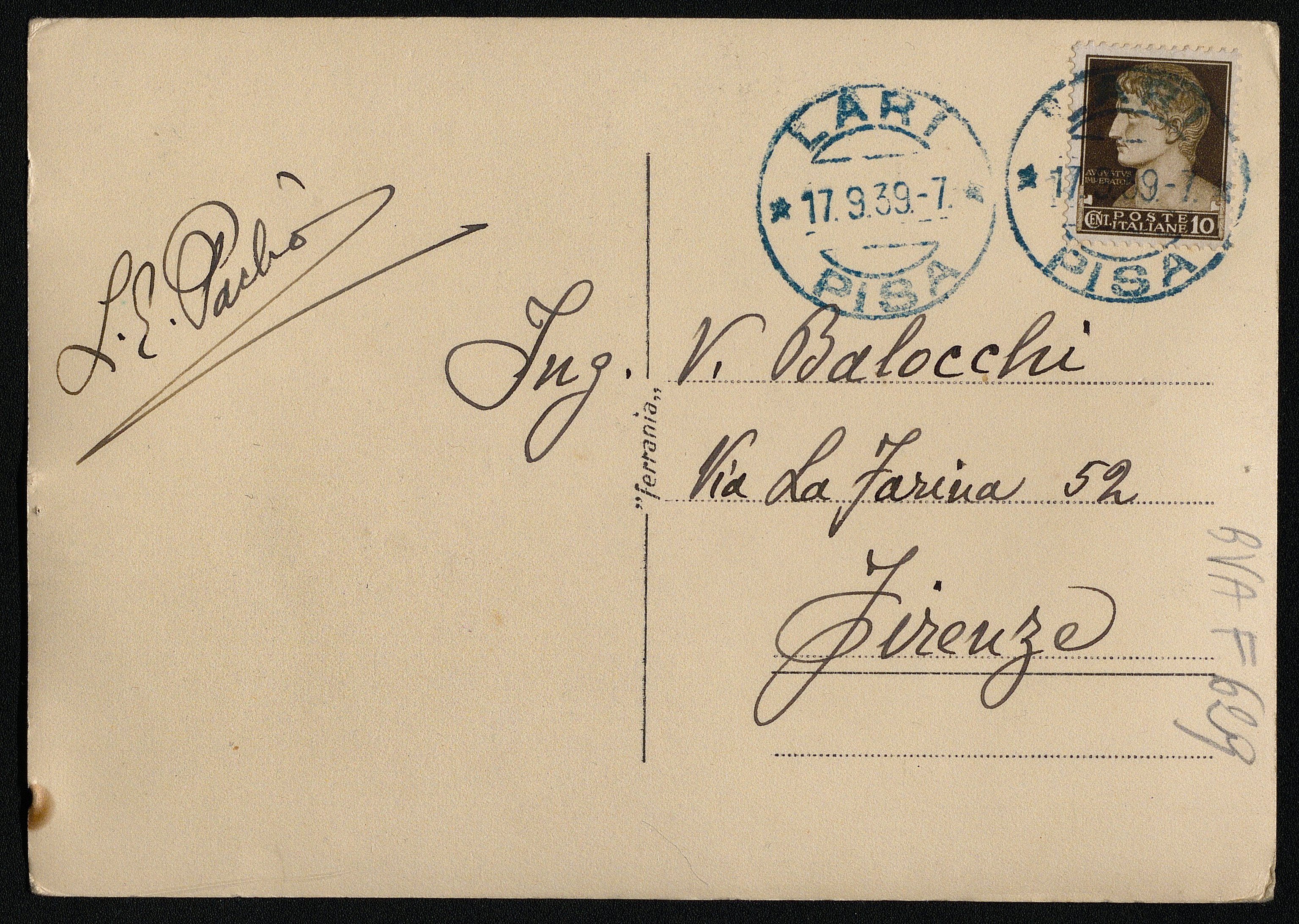 Scritta minatoria sulla parete di una casa. Cartolina inviata dall'autore a Vincenzo Balocchi