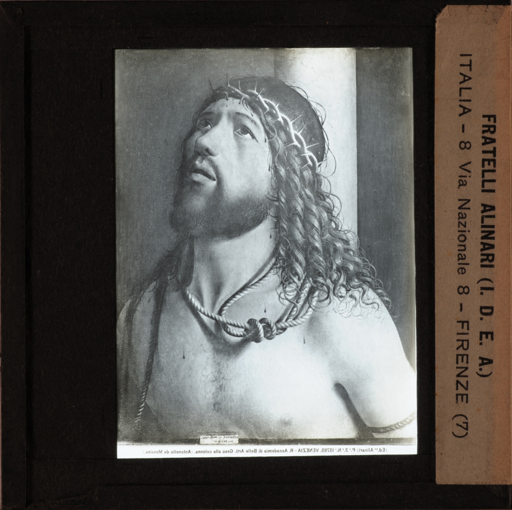 - NOTIZIE STORICO CRITICHE La diapositiva, tanto nella didascalia fotografica predisposta da Alinari quanto in quella redatta a mano presso l'Istituto di Storia dell'Arte, riporta l'errata attribuzione dell'opera ad Antonello da Messina