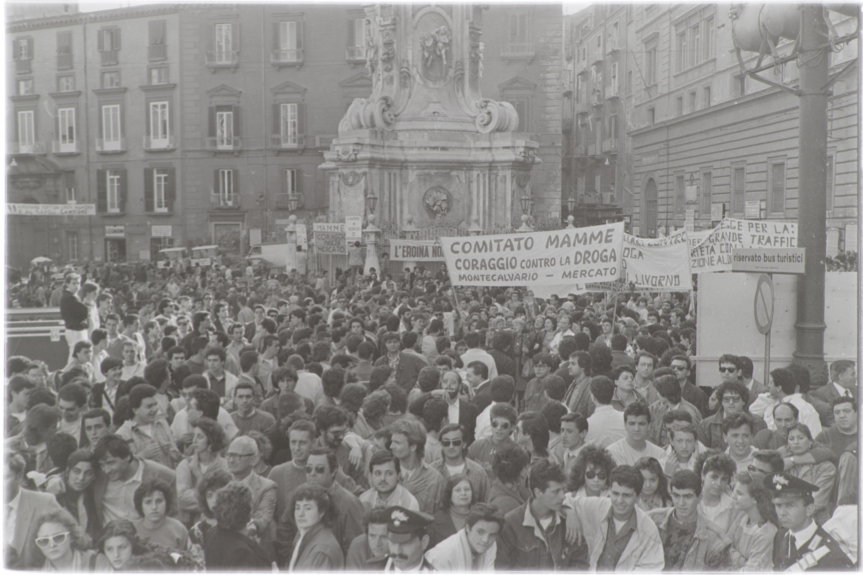 - NOTIZIE STORICO CRITICHE Il Comitato della Mamme Coraggio di Montecalvario è stato un gruppo di donne del quartiere Montecalvario (Napoli), attive dal 1985 nella promozione della sicurezza e del sostegno alle famiglie colpite dalla criminalità locale. Si riunirono in un corteo a Napoli, Quartieri Spagnoli, 1985, in azione contro droga e criminalità locale, guidato da Ernesto Santucci (1930-2021), sacerdote gesuita italiano attivo a Napoli negli anni ’80. Nei Quartieri Spagnoli ha promosso iniziative di sostegno ai giovani emarginati e alle famiglie colpite dalla tossicodipendenza, fondando la comunità terapeutica “Il Pioppo” a Somma Vesuviana