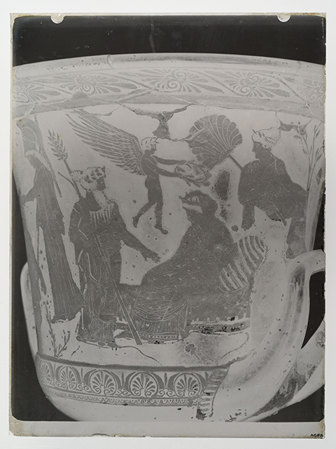 Negativo su supporto di vetro di forma rettangolare con soggetto posizionato in senso verticale. Il supporto, in basso a destra, evidenzia il marchi Agfa