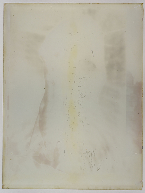 Negativo su supporto di vetro di forma rettangolare con soggetto posizionato in senso verticale. Sul verso, nell'angolo in alto a destra, è graffito il numero 211 di archiviazione del negativo. Per poter leggere il soggetto, il negativo è stato elaborato in positivo con Photoshop