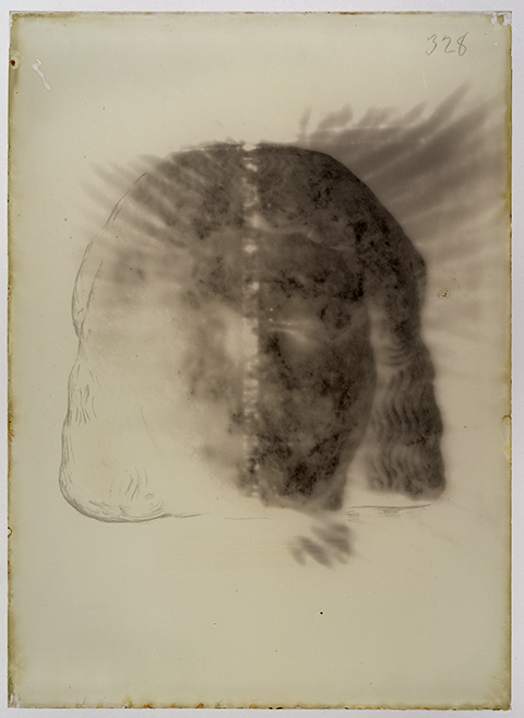 Negativo su supporto di vetro di forma rettangolare con soggetto posizionato in senso verticale. Sul verso, in alto a destra è manoscritto il numero di archiviazione 328