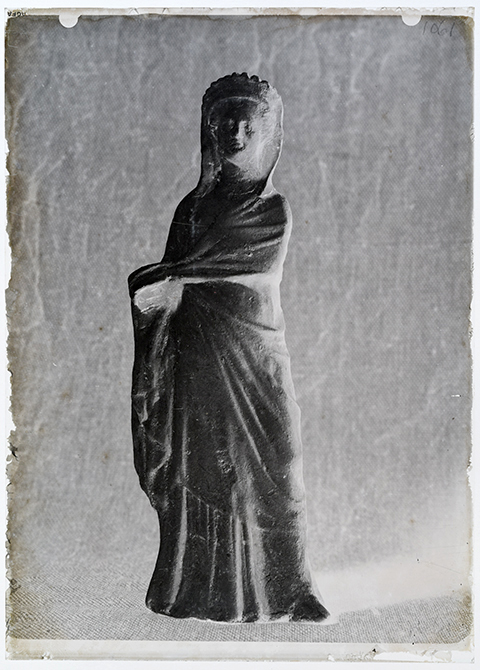 Negativo su supporto di vetro di forma rettangolare con soggetto posizionato in senso verticale. Sull’emulsione in alto e in basso a destra, è manoscritto il numero di archiviazione 1061; in alto a sinistra (al contrario rispetto al verso della foto) è serigrafato il marchio della Ditta AGFA produttrice delle lastre fotografiche