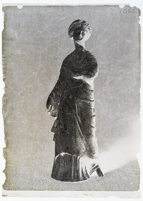 Negativo su supporto di vetro di forma rettangolare con soggetto posizionato in senso verticale. Sul verso in alto a destra, è manoscritto il numero di archiviazione 1062 e in basso a sinistra è serigrafato il marchio della Ditta AGFA produttrice delle lastre fotografiche