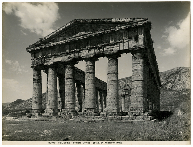- ISCRIZIONI sul supporto primario: recto: in basso al centro - 20163 - SEGESTA - Tempio Dorico - (Stab. D. Anderson 1929) - catalogatore - a matita -