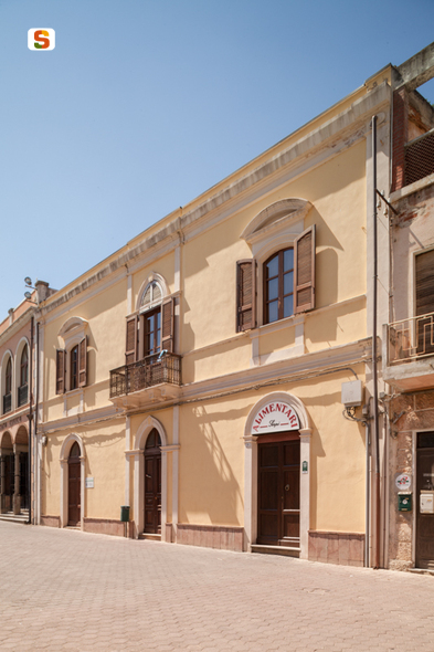 il palazzo urbano, di grande rilievo per dimensioni e posizione rispetto alla chiesa di San Nicola, ha una planimetria quadrangolare ed è costruito in aderenza per due lati. La struttura muraria portante è in pietra e si sviluppa su due livelli. La copertura è a padiglione in coppi di laterizio con lucernario centrale in vetro e metallo. Il prospetto principale è tripartito verticalmente, con la parte centrale leggermente avanzata e sottolineata da paraste connesse alle cornici all'imposta dei due archi acuti equilateri sovrapposti. Le fasce marcapiano, marca finestra al piano primo e il cornicione scandiscono i registri orizzontalmente. Le aperture sono ad arco ribassato, sormontate da frontoni nelle finestre laterali al piano primo, ed ad arco a tutto sesto al piano terra. L'altezza dell'edificio è di circa 8 metri alla gronda e la pianta è inscrivibile in un quadrato di circa 15,5 metri. Il corpo N sul cortile interno misura invece 15 per 5,5 metri.