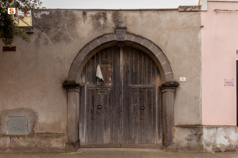 ubicato nel centro di Samassi, il bene è uno dei portali storici del paese. Si tratta di un portale ligneo a doppia anta a protezione di un'apertura ad arco a tutto sesto, coperto da da una struttura a falda inclinata. L'arco è costituito da 15 conci di trachite di Serrenti, e nella chiave di volta sono inscritti l'anno di realizzazione, 1924, e le iniziali del proprietario P.P.. I piedritti, sempre in trachite, sono pezzi monolitici. Il portale ha una struttura a doghe verticali accostate, montate su un telaio interno; presenta superfici non trattate, con cornici in rilievo che delimitano il profilo di due rettangoli, uno per l'ingresso pedonale. Il portale ha affaccio diretto sul marciapiede della strada, per un'altezza di 3,19 metri per 2,75 di larghezza.