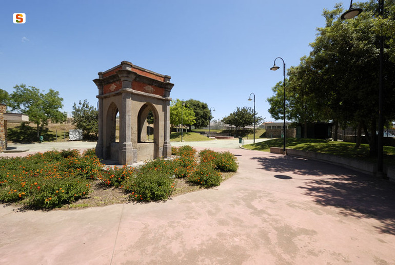 costruzione a pianta centrale secondo il modello diffuso del pozzo coperto con aperture ad arco sui quattro lati. L'opera, in pietra grigia, sorge su di un basamento quadrato in lastroni squadrati ed è caratterizzata da pilastri d'angolo modanati e con basamento. Una partizione superiore, con cornice, presenta i prospetti in mattoni rossi faccia a vista.