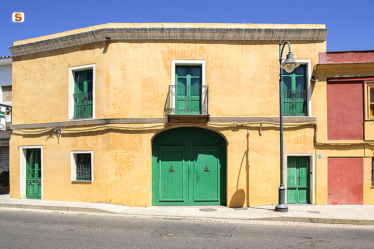 l’edificio presenta le caratteristiche tipiche della casa rurale del Sulcis, anche se nel lungo periodo ha acquisito il carattere di casa padronale, caratterizzato da una pianta rettangolare con il prospetto principale che affaccia sulla via Roma e quello retrostante sulla corte interna, le murature sono prevalentemente in pietrame lungo i fronti principali e in mattone crudo lungo i muri trasversali, solai in legno e copertura con tegole sarde. I serramenti e gli infissi del fronte principale presentano interessanti finiture: le porte finestre del piano superiore sono fornite di inferriate in ferro battuto, gli infissi, in legno,sono tinteggiati di verde. Da segnalare il muro di facciata che si eleva al di sopra della gronda con modanature di finitura in facciata, cornici marcapiano sottolineano la divisione tra il piano terra e il primo piano.