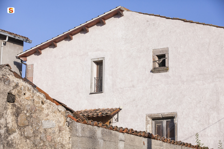 il bene che oggi possiamo vedere, in origine abitazione dei ricchi proprietari terrieri locali -i Conti di San Martino- è esito di aggiunte edilizie su una prima impostazione di piccole abitazioni, di rilevante pregio architettonico, disposte in una corte aperta. Nonostante tali modificazioni, dovute al continuo uso, è possibile leggerne la stratigrafia e individuare le parti di antecedente realizzazione, che ancora ben conservano i caratteri distintivi dell'architettura tardo gotica locale (e di maestranze che proseguivano la lavorazione seguendo gli stili introdotti da maestranze spagnole). Ritroviamo anche qui le mostre di finestre in pietra trachitica, con soluzione decorativa ricca, come il tipico motivo “a fiamma” al centro dell’architrave o lavorazioni fitomorfe sui piedritti su una base linearmente modanata. Degno di attenzione il portale di ingresso alla corte, anch'esso caratterizzato da conci di trachite e restante muratura di pietrame informe intonacata.