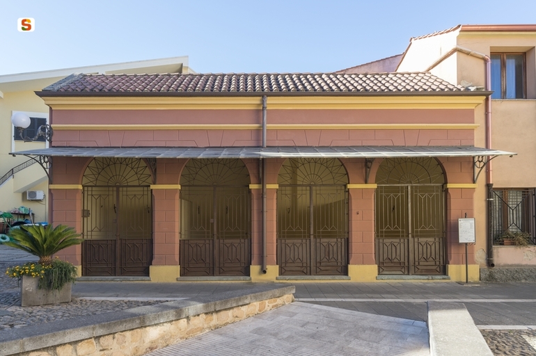 i posteggi coperti di Serramanna sono un piccolo edificio funzionale, un tempo, alla vendita della carne. Ubicati nei pressi del Monte Granatico, essi consistono in unico corpo di 10 metri per 5, costruito in aderenza per un lat corto, composto da quattro loggette non comunicanti tra loro. Il fabbricato, con copertura a doppia falda in tegole di laterizio, si sviluppa su un livello fuori terra con uno spazio sotto tetto che lo eleva fino a 4,5 metri di altezza alla gronda. Le 4 aperture sono ad arco a tutto sesto, con accesso diretto dal piazzale antistante e protette tramite cancelli in ferro battuto lavorato. A copertura è anche presente una leggera pensilina in ferro, larga 1,5 metri circa, sostenuta a sbalzo da 5 mensole in ferro lavorato. Le mensole infatti sono in corrispondenza dei piedritti, che come tutta la specchiatura inferiore, a partire dal basamento fino alla fascia marcapiano sono trattati da una listatura a finte bugne. Il cornicione superiore completa l'edificio.