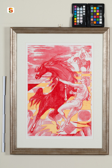 carta/ acquaforte/ acquatinta/ bulino in giallo e rosso