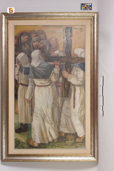 Portatori della croce. figure maschili che portano la croce in processione