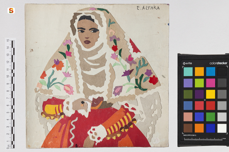 Donna di Osilo. ritratto di figura femminile in costume popolare sardo