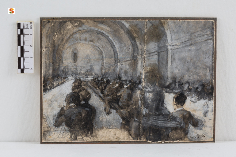Scene all'interno di una chiesa. interno di chiesa con figure